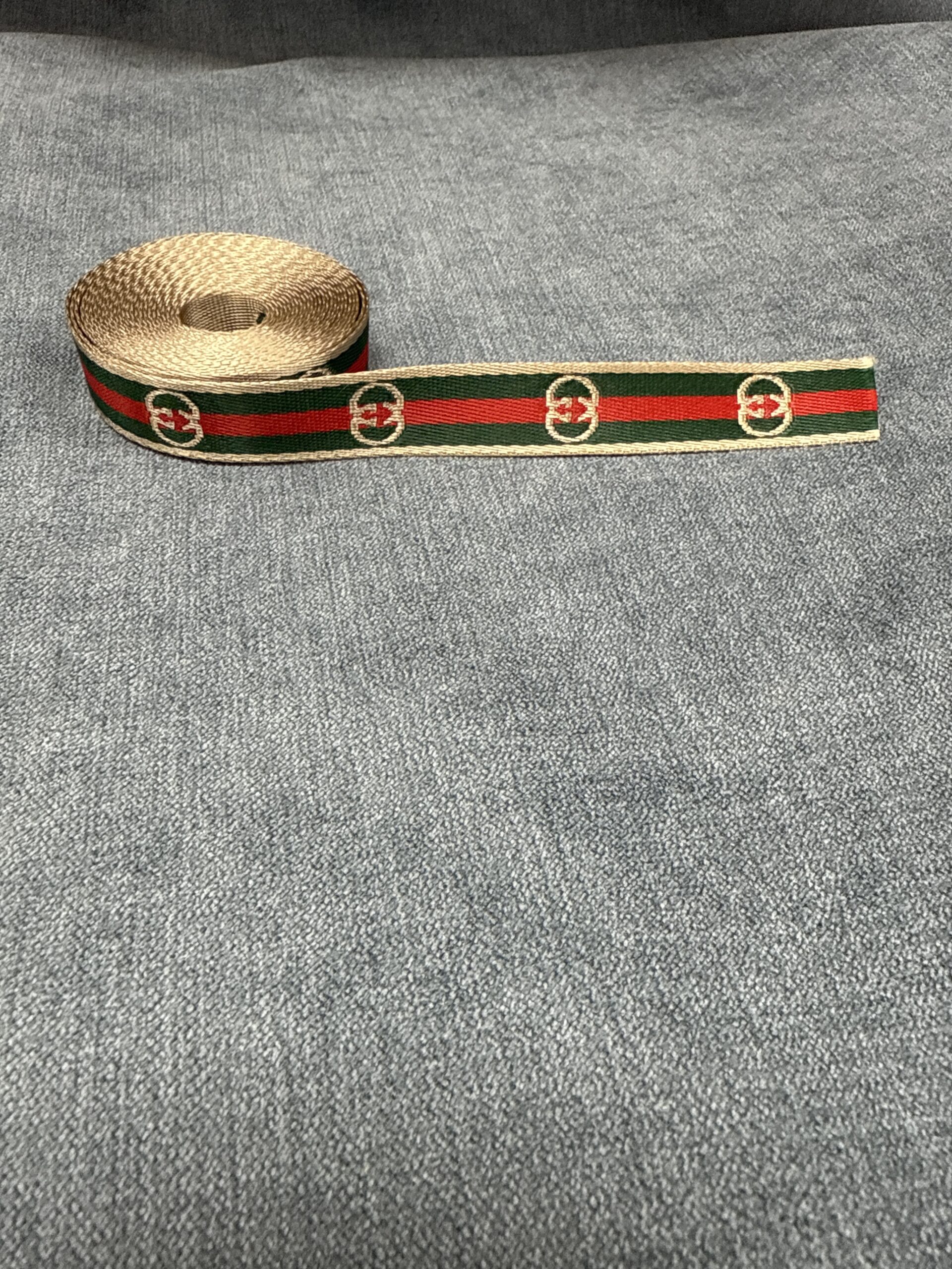 Add a sophisticated designer touch to your next project with this GG 1 Yard Signature Grosgrain Ribbon. This stylish grosgrain ribbon features the classic GG-inspired stripe pattern, perfect for custom clothing, handbags, hats, hair accessories, and home décor projects.